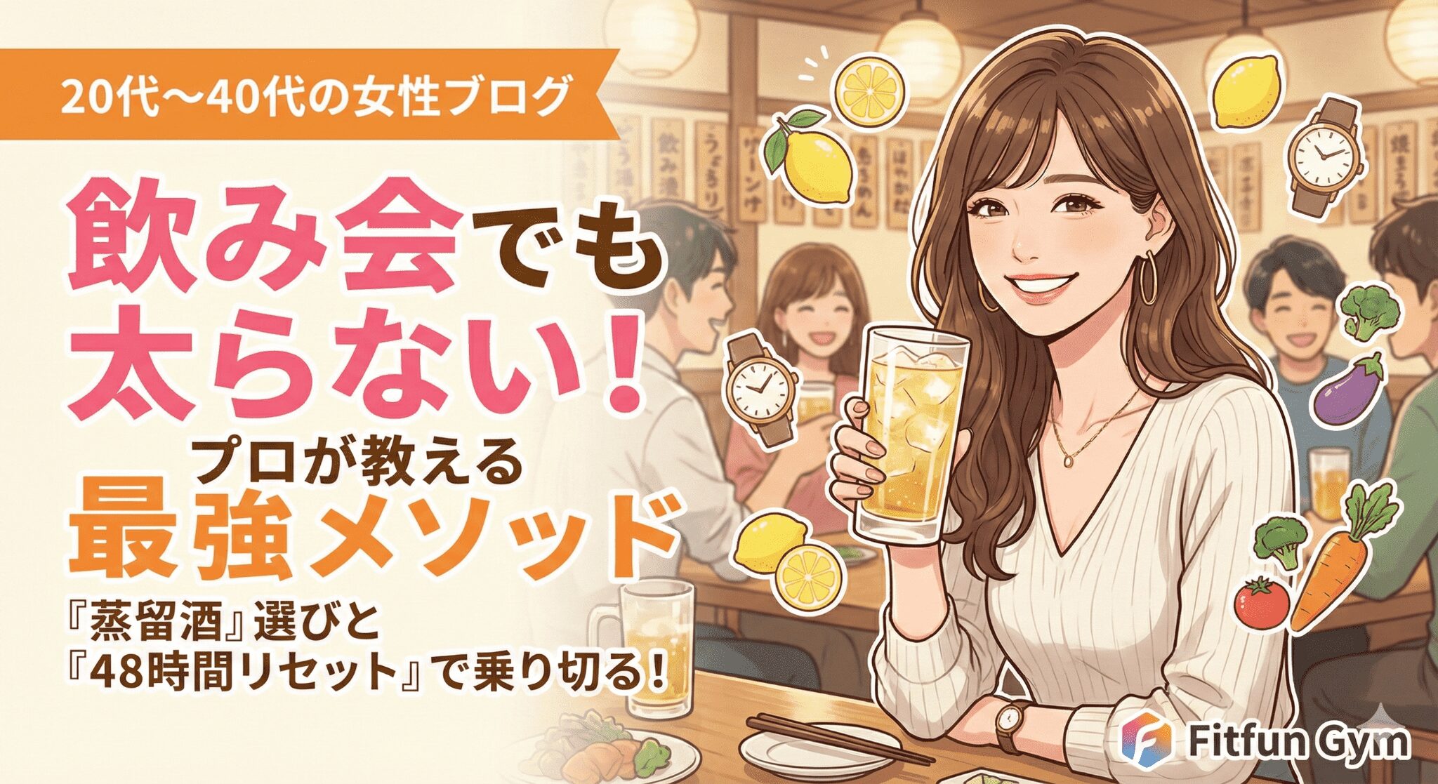 「今週も忘年会、来週は新年会…断れないけど太りたくない!」「飲み会の翌日、顔がパンパンにむくんで体重が2kg増えていた…」年末年始や歓送迎会のシーズン、多くの女性がこの「飲み会太り」の恐怖と戦っています。楽しい席を断るのは辛いですが、かといって今まで頑張ってきたダイエットを無駄にもしたくないですよね。でも、安心してください。実は「飲み会に参加すること=太る」ではありません。太ってしまう本当の原因は、お酒そのものではなく「肝臓の処理能力を超えた飲み方」と「おつまみの選び方」にあります。体の仕組み(生理学)さえ理解していれば、飲み会を楽しみながら体型をキープすることは十分に可能なのです。この記事では、Fitfun Gymのトレーナーも実践している、「飲んでも太らないための防衛策」と、もし食べ過ぎてしまった時の「翌日の帳消しリセット術」を、プロの視点で分かりやすく解説します。