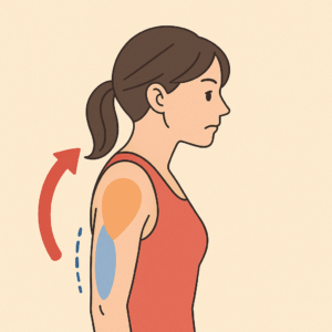 二の腕を細く見せるには、腕そのものだけでなく“肩甲骨が動くかどうか”が重要です。肩甲骨が固まっていると腕ばかりが働き、二の腕の後ろ側(上腕三頭筋)が使われにくくなってしまいます。
