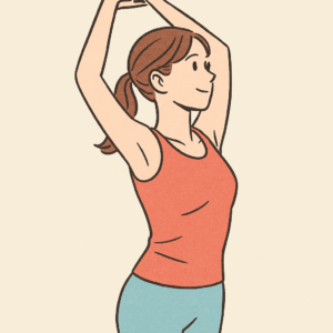 肩甲骨が固まっていると、腕が常に前に出てしまい、二の腕が横に広がって見えます。そこで大切なのが、肩甲骨を動かして背中の筋肉が働きやすい状態をつくることです。大きく肩を回したり、背伸びをして肩甲骨を軽く寄せるだけでも背中が使われやすくなり、二の腕が自然と身体の横に収まるようになります。たったこれだけで、二の腕の“ねじれ”が取れて細く見える変化が起こります。