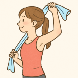 ② タオルプル(上腕三頭筋が自然と働く、初心者向けエクササイズ)